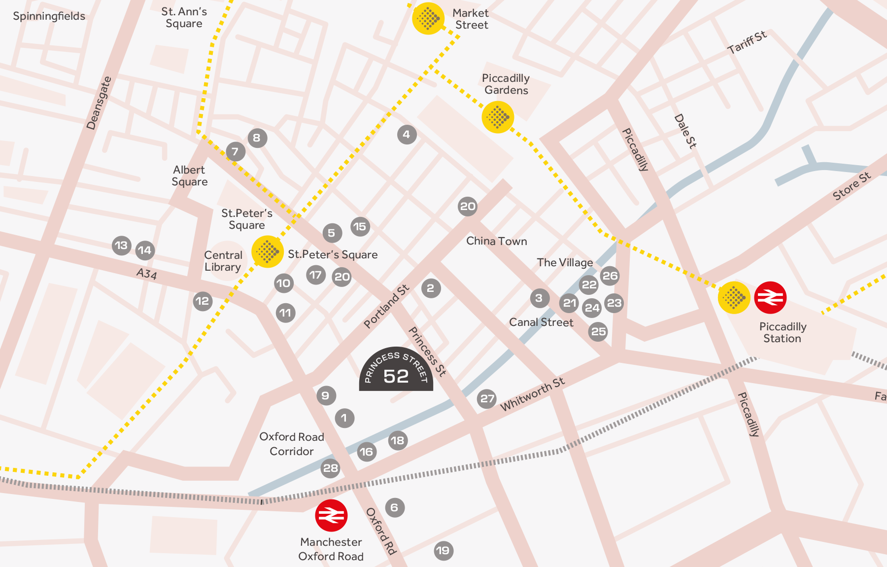 52 Princess Street is prominently located in Manchester City Centre, close by to the Oxford Road Corridor, Kampus and Manchester New Square.